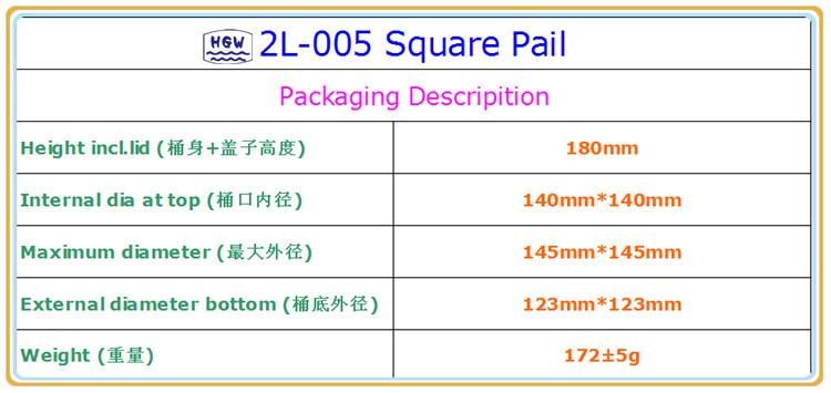 Factory Directly supply Outdoor Kitchen - (2L-005) Square Pail/Bucket – HGW Trade Detail: